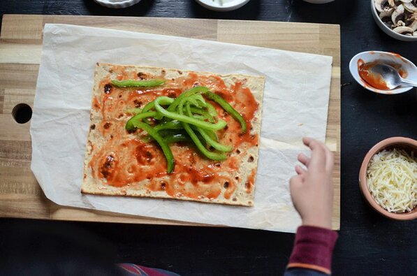 Do let them slather the sauce and add the toppings. This teaches them how to follow instructions, and they really enjoy the task. They will feel so proud and accomplished and hungry when the pizza is ready to eat. 🙂